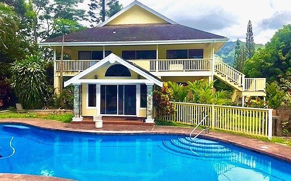 Very Private 3 Bedroom 2.5 Bath home with Approximately 2283 sq feet Tiled Pool with Large Sunning Step and Gorgeous Waterfall 2nd story Covered Lanai that runs full length of Great Room Porte-Cochere Entrance Fruit Trees - Orange, Tangelo, Lemon , Fig , Coffee , Banana, Cherry and Macadamia . Separate detached deck with covered kitchen and dining area Serene pasture land and colorful mature tropical garden Lots of room for growing Vegetables , A guest house of 500 sq t may also be built on the property ( Check with county to verify ) .