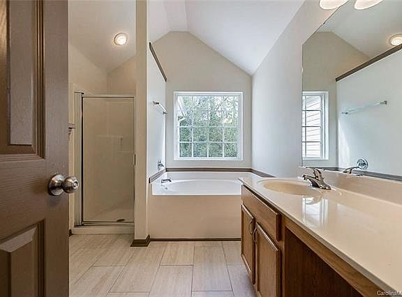 This Charlotte two-story cul-de-sac home offers vaulted ceilings, a fireplace, granite kitchen countertop, a master bath separate tub and shower, cultured marble master bath vanity, an open patio, and a one-car garage. This home is vacant and cleaned regularly.