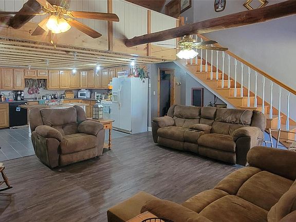PEACEFUL COUNTRY LIVING in this 1.5 story home on 20+- acres. This 3 bed, 2 bath home has much to offer boasting an open living area with beautiful, vaulted ceilings, eat in kitchen, 2 spacious bedrooms, bath & laundry all on the main floor. Upstairs you'll find a large open loft that would make a great reading nook, media center or home office. You will also find a master suite with 3/4 bath and plenty of privacy! Sit on your covered front porch drinking your coffee as you listen to turkeys gobble in the spring or watch the deer drinking from the pond. Great hunting is right outside your door. Always wanted a mini farm? Fenced in pasture, chicken coop & a 40x60 barn gives you a great place to start. A 24x30 shop with 12' lean-to is a perfect workshop or storage area with space divided by partitions. Take a look at this peaceful, private setting just minutes from town. This could be your dream property, with a few finishing touches.