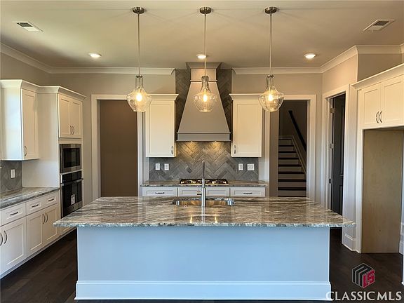 Welcome to Luxury Cottages living in Watkinsville’s premiere community Trove. Cottage 4 features the primary bedroom on the main with 4 bedrooms, and 3.5 baths. On the main level is a foyer opening into the family room, gourmet kitchen, family room, office, and primary bedroom. The gourmet kitchen features granite countertops, tile backsplash, an island, a pantry, gourmet stainless steel appliances, and hardwood floors. The primary bedroom has a beautiful bathroom and walk-in closet. Stairs w/ oak handrails and wrought iron spindles lead upstairs. 2nd floor features and a flex room, 3 secondary bedrooms and 2 baths. The exterior features a covered loggia with fireplace.
