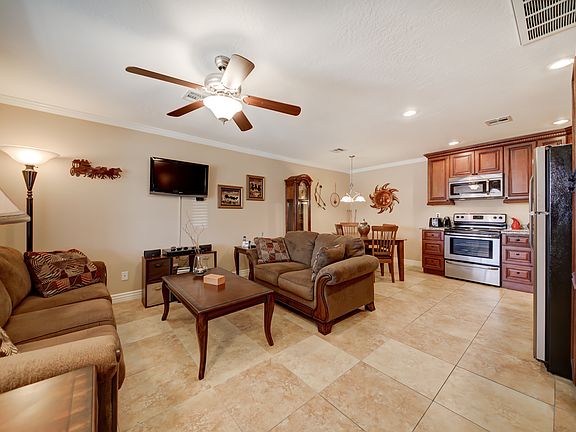 This WONDERFUL SINGLE LEVEL condo with no one above you is a rare opportunity to find! Especially a one of a kind unit that has been Completely remodeled in 2011 with 20 inch tile throughout and Crown Molding! Updated Kitchen Cabinets, Granite Counter tops, Stainless Steel Appliances with under cabinet lighting and recessed lighting! New RO System installed in 2015! The Large Bath Room with Granite Counter top and recently renovated in 2016 is the Walk-in Tile surround shower with Rain Shower Head! The French Doors will lead you into the Master Bedroom with a Large Size Master Closet that has a Granite top built in Cabinet. New AC Unit installed in 2016! Nice front patio area with a large storage unit. This condo comes furnished! HOA fees include water, sewer, trash and expanded cable.