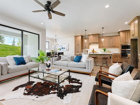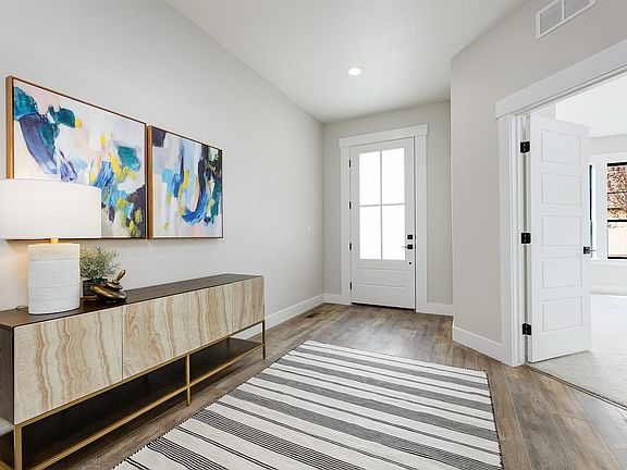 This gorgeous home is set in Eagle's coveted LEGACY SUBDIVISION. This elegant single level boasts 10-foot ceilings throughout, custom cabinetry with ample storage, and a pantry with floor to ceiling shelving. Pocket office off the Great Room with alder cabinetry. The wide entry opens to a beautifully designed great room with a stone fireplace and a double sliding door leading to a professionally landscaped backyard. The East facing backyard has a large patio, perfect for entertaining. This home has all the upgrades. Oversized 2 car garage. Walking distance to the community pool and walking paths. You won't want to miss this beauty.