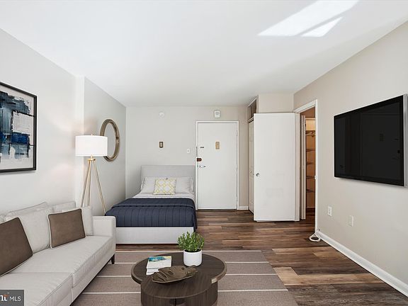 Great downtown pad in sought-after Logan Circle! Beautiful spacious studio with ample room for living, dining, and sleeping. Natural light streams through two large windows. Updated kitchen, great closet space throughout the unit and a full bath with dressing room. Washer and Dryer conveniently located on the same floor. Town Terrace West building amenities include a 24-hour concierge, rooftop pool and deck with lounge areas. All utilities are included in the condo fee! Absolutely fabulous central location straddling the neighborhoods of Dupont, Logan Circle and Downtown DC. Easy access to excellent dining, museums, monuments, and nightlife and conveniences like Whole Foods, Metro and some of the best gyms in the city. Photos show virtual staging.