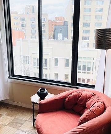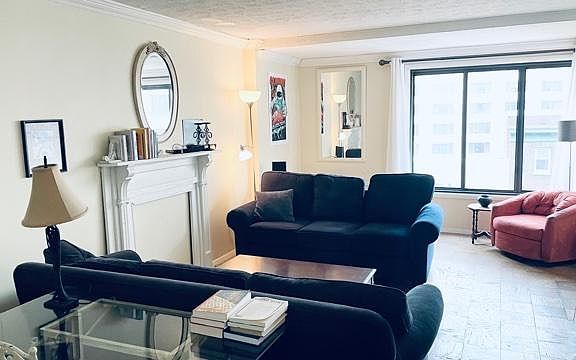 JR-1BR, great views, rooftop pool, Move-in date up until Jan 15th (flexible). 6th floor front-of-building tree top views and spacious living area with efficient layout. Entire unit freshly painted (12/17). 24-7 front desk support/security, rooftop deck & rooftop pool. Marble tiled bathroom renovated (2021). Work from home with beautiful light-filled views (see photo of 3-pane large window.) Bedroom area is located in den (room without window) but separate from main living area with a solid door. Walk to everything CBD, Logan Circle, Dupont Circle, etc. Roof deck, rooftop pool, 24-7 security/front desk support. Available January 15th for 1+ years. Please text for video tour. Thanks for your interest! Utilities fixed at $69/mo for utilities (heating/cooling/gas/water/electric). Building requires a $250 move-in fee