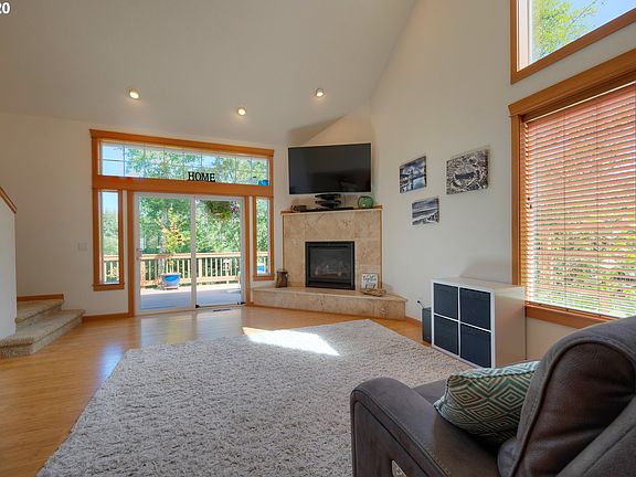 Open concept kitchen and great room with vaulted ceiling join spacious rooms with thoughtful designer finishes throughout. Attention to detail like laminate bamboo floors, slab granite counters, custom travertine fireplace, tiled bathrooms and wood wrapped windows make this efficient home a must see! The private backyard and deck are surrounded by trees, abutting a nature conservancy. Nearby historic Fort Stevens awaits, with ocean beaches, trails and more just minutes away.