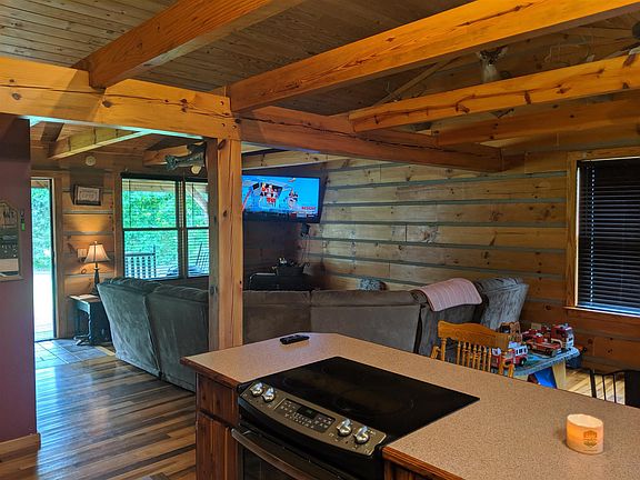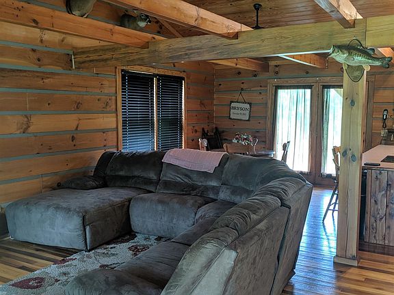 Gorgeous log home has an open living/ kitchen area that will make you feel at home upon entering. Hardwood and tile floors, separate laundry, exposed beams, full length front and back porches are a plus! Property has a detached shop with concrete floor, a barn, and 5.09 ACRES. If you want a property with a little bit of everything at an affordable price, this is the one!