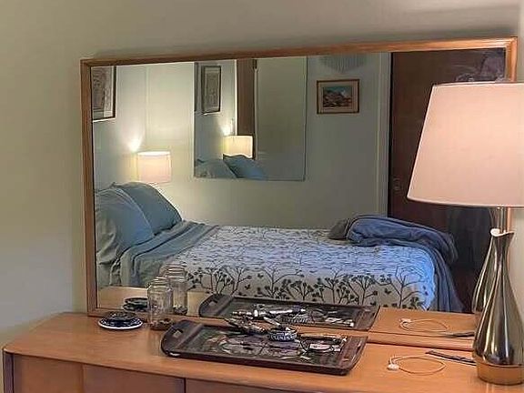 1 Bedroom for rent in shared single family home. Vintage Heywood Wakefield Bedroom furniture. Living room with fireplace, Eat in Kitchen, bike storage, internet included, gas BBQ and charcoal BBQ.