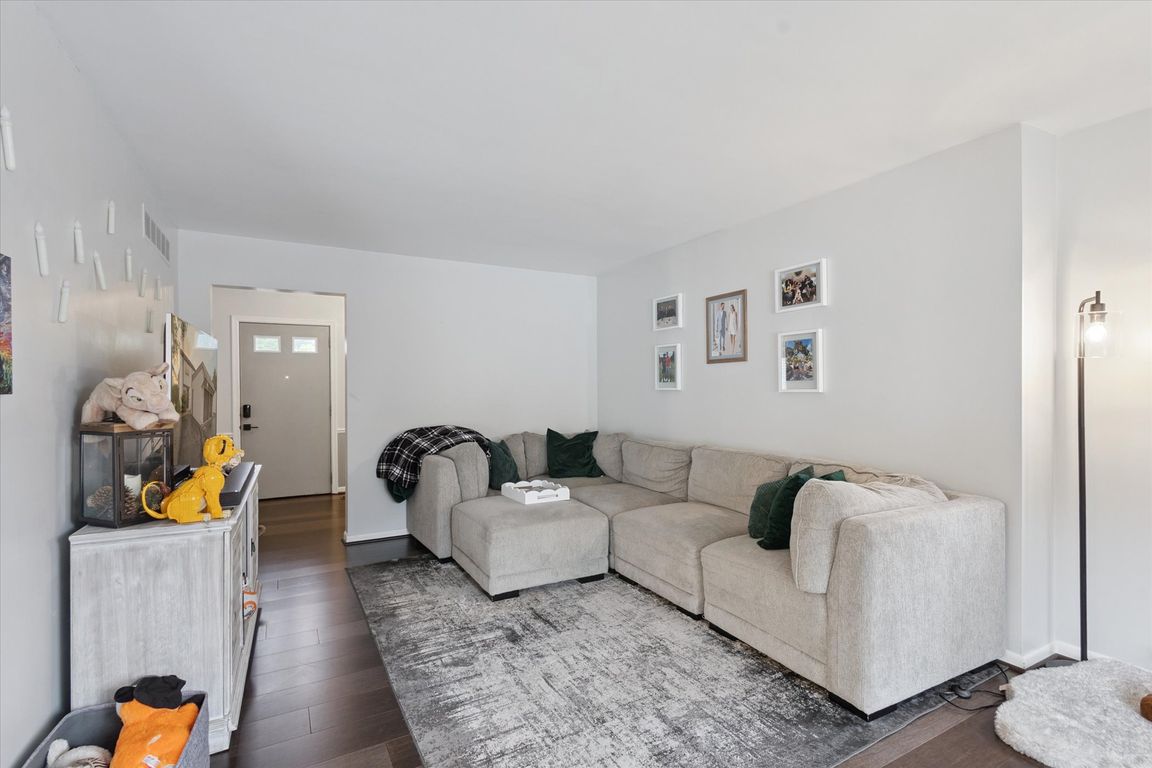 This home has been fully renovated from top to bottom with high-end finishes throughout. The main level showcases elegant luxury bamboo flooring and an open-concept living and dining area filled with natural sunlight. The modern kitchen is equipped with stainless steel appliances, new white cabinetry, dovetail countertops, a stylish backsplash, and a cozy breakfast nook. From the dining area, step out to your private, fully fenced vinyl courtyardfeaturing a large deck that spans the entire back of the unit, perfect for grilling, gardening, or simply relaxing.