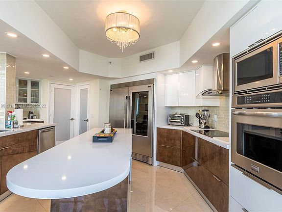 Entirely remodeled to modern luxury, this one-of-a-kind ocean front condo boasts wrap around balconies with 180 degrees, unobstructed floor to ceiling views of the ocean and the city from everywhere. Located in the sought-after C-stack of the Corniche Condo, this large 3 BR, 3 Bathrooms offers 2 spacious master suites on opposite sides with custom walk-in closets, marble bathrooms, dressing room, spectacular open concept kitchen with island, large pantry, formal dining room, family/media room, living room. Comes with a deeded garage space & storage area. Building has recently gone through major multi-million renovation. Amenities include Tennis, Pool, beach access, BBQ area, party room, biz center, library, gym, billiard & much more. See the virtual tour for more details. Must see!!!