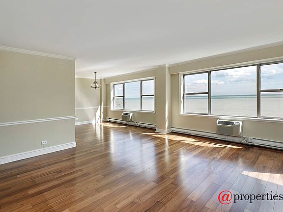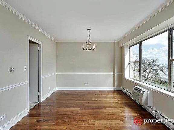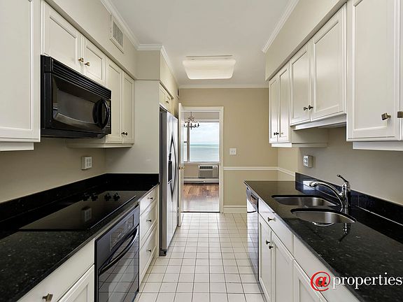 Panoramic lake views from this one-of-a-kind, first floor, 3 bedroom condo in sought-after 1440 Sheridan Road. This unit is move-in ready with wood floors in the living and dining rooms, newly carpeted bedrooms and freshly painted throughout. Roomy master suite with renovated bath. Additional full bath and charming powder room. Bright white kitchen along with spectacular views of the lake and green space from the unit and private balcony. Brand new in-unit air conditioners. Heated garage with parking spot. Private beach access. Well maintained building with exercise room, laundry room and soon-to-be-renovated lobby and hallways. Exceptional North Shore location -- walk to Plaza del Lago for coffee, dinner and shopping!