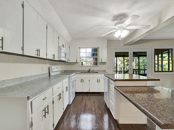 Discover Your Private Retreat Surrounded by Mature Trees!. As you arrive through the gated entrance, you'll immediately appreciate the seclusion this property offers. A welcoming firepit area sits across from the home—perfect for gatherings and quiet evenings outdoors. Behind the house, you'll find a spacious insulated workshop with heat and ac as well as a compressed air system. Two large attached carports attached to the shop offer extra parking or storage options.