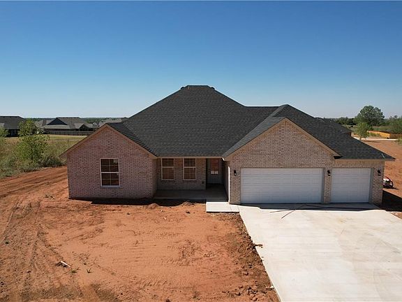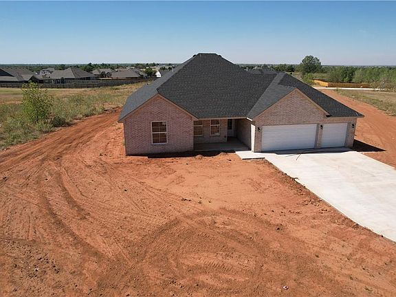 Beautiful new construction home with great use of space on over 1.25 acres! This neighborhood is shop approved! Built on post tension slabs, with flex 4th bedroom that could be used as an office. Sizable bedrooms on one side of the house with the master on the opposite side. Gorgeous kitchen with shaker style cabinets, breakfast bar, stainless steel appliances, and quartz countertops. LVP flooring throughout the main living areas, carpeted bedrooms. Large master suite with tub and shower, walk in closet, and double vanity. Covered back patio and 3 car garage. Storm shelter not included, but can be added for an additional price. Don't miss your chance to buy this today! Estimated Completion Nov. 2022