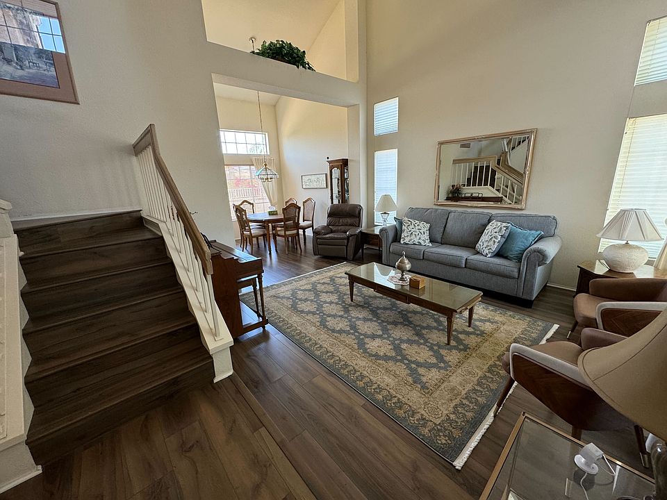Open backyardBeautiful viewsDownstairs laundry roomOpen spaceHigh vaulted ceilingsNatural lighting