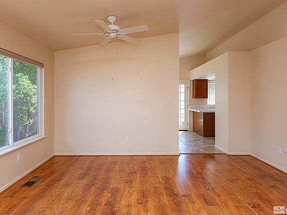 Located at the base of Mt. Rose Highway in Galena area. Within 20 minutes you can be at the airport or up in the mountains skiing. Desireable neighborhood close to shopping with no HOA. Single level living features large living area with laminate floors and a dedicated work from home space. Enjoy views of the Virginia Range from the kitchen window and backyard patio. Primary suite features a double sink vanity and walk-in stall shower. Two secondary bedrooms share a hall bath. RV parking., Finished garage has extra electrial outlets, insulated garage doors, and permited hot water heater installed in 2021. East facing patio gets the evening shade and mature trees create privacy and parklike setting. There are 2 large storage sheds for lawn/garden tools. Central AC and Ecobee thermostat.