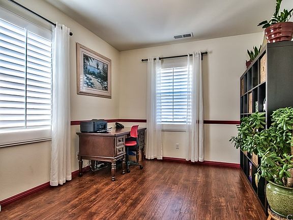 Resort style living is what you feel when you reside in this highly desirable gated community, The Enclave! This stunning one story with an open floor plan will surely take your breath away. First impressions, fully landscaped front yard, wonderful curb appeal! Custom laminate flooring throughout. Elegant formal dining room accented with soft chandelier lighting. To include an additional room, now being used as an office, or whatever you may like! Beautiful large kitchen with spectacular granite counter tops, and full backsplash. Enjoy a meal at the breakfast bar, or at the kitchen dining table, there is plenty of room. An open and inviting family room paired with a large cool ceiling fan. Generously sized master bedroom with sitting area, walk-in closet. Amazing granite counter tops in master bathroom to include a soaking tub, his/ her sinks. Plantation shutters are amongst this home's beautiful decor. Very low maintenance backyard with a covered patio and custom stone flooring... But wait the attractions just don't stop there! This house is powered by Energy Solar. Panels are paid for and the value has been included in the price of the home! Save tons by utilizing this home's sufficient power conservation of the windows, roof, and controlled thermostat. An absolute must for the fun in the sun weather! Speaking of fun, this family-oriented community offers several parks, basketball court, picnic areas, Junior Olympic sized pool, and clubhouse! What more could you ask for?