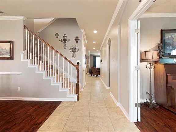 Tour this stunning home on a quiet cul-de-sac next to a greenbelt. Exceptional brick and stone exterior invite you into this move-in-ready home with all updated trending colors and finishes. Your family will love to entertain in this spacious & open floor plan, abundance of natural light, & guest suite with full bath & private study down. Home boasts wood flooring, crown molding, new roof in 2019, expansive eat-in island, work station, all stainless appliances, & professionally painted cabinets with hardware. Step out onto the back patio with newly installed pergola & easy maintenance landscaping, all overlooking views of greenbelt on a quarter acre lot. Book a viewing at your own risk; you will fall in love!