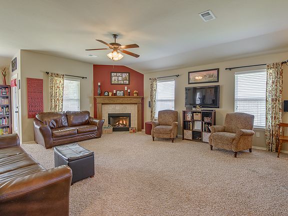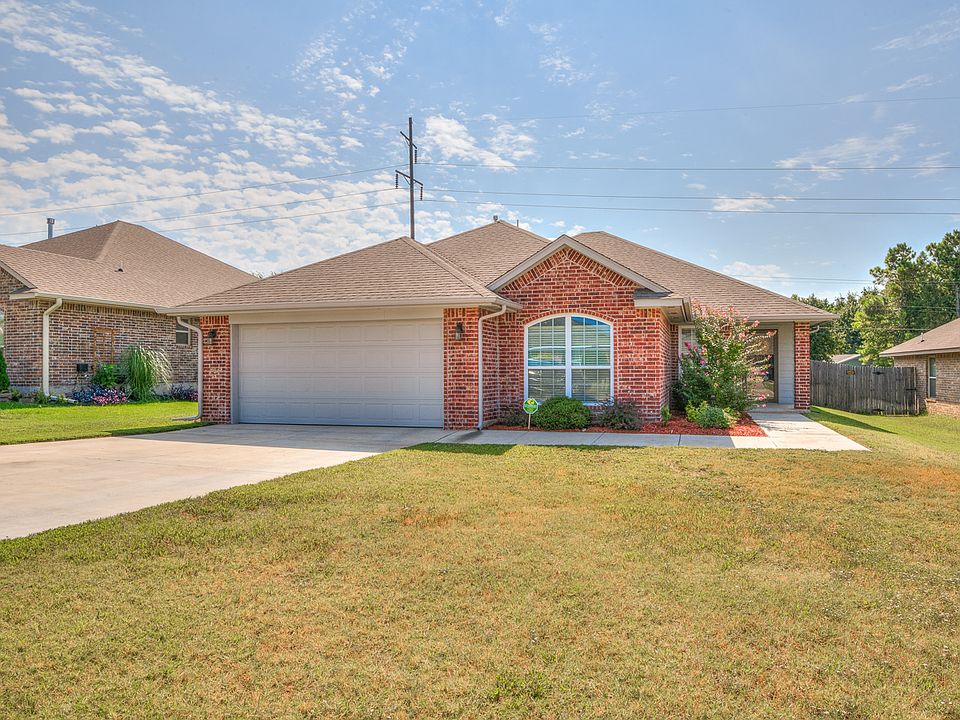 OPEN HOUSE Sunday September 27 from 2-4pm! Beautiful home close to Choctaw Creek Park and Choctaw High School--only 5 years old. You'll enjoy the open floor plan in the living/kitchen and dining. Large study off the living room (could be used as 4th bedroom, if needed.) Master bedroom is separate from large-size guest rooms & contains 10 foot deep walk-in closet. Kitchen has beautiful cabinetry, granite and touch-controlled under cabinet lighting. Brand new hot water heater! In-ground sprinkler system throughout entire yard. State of the art security system. Thermostat automatically switches between heat/cool. Home is highly efficient and insulated--low average utility bill info available. Gutters all around home and covered porch on front and back. Can't miss this move-in ready home. Come see today!
