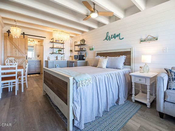 CURRENTLY UNDER CONTRACT, SELLER WILL CONSIDER BACKUP OFFERS ... IMPROVED SELLER FINANCING TERMS OFFERED - Probably one of the last opportunities to get Gulf Front, on the sand, for less than 200k!! This is one of the nicest, if not THE nicest unit in the entire building, every inch of this condo has been given attention. Redesigned and decorated by a professional interior designer, complete remodel includes - Vaulted ceilings, crown molding, LVP flooring, shiplap walls, custom polished concrete countertops with a little history sprinkled in, high end tiling in shower, open shelving, barn door leading to bathroom, custom lighting... this unit has it all! Overlooking the newly remodeled pool, your Gulf views from the living room are unobstructed and stretch to the East over 1 mile of uncrowded beach. Condo has been a vacation rental over the last five years and has an excellent rental history. Don't worry about bills as your HOA fees include everything, even electric! Fontainebleau Terrace is experiencing a bit of a renaissance with many owners remodeling individual units and a newly remodeled pool and decking area. Truly one of the best, this unit is a must see - schedule your showing ASAP!