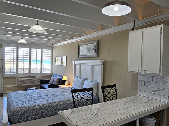 Have you been looking for a retirement vacation home? The secret is out! Panama City Beach is now the unforgotten emerald coast. This beautifully renovated unit has uncovered the gorgeous concrete beams in the ceiling. It provides a clean and historic feel. Unit 327 faces the eastside beach overlooking the pristine beach that is deeded never to be developed. Emeral Coast white sandy beach views right from your room. Enjoy one of the many terraces to relax and watch our famous sunsets.