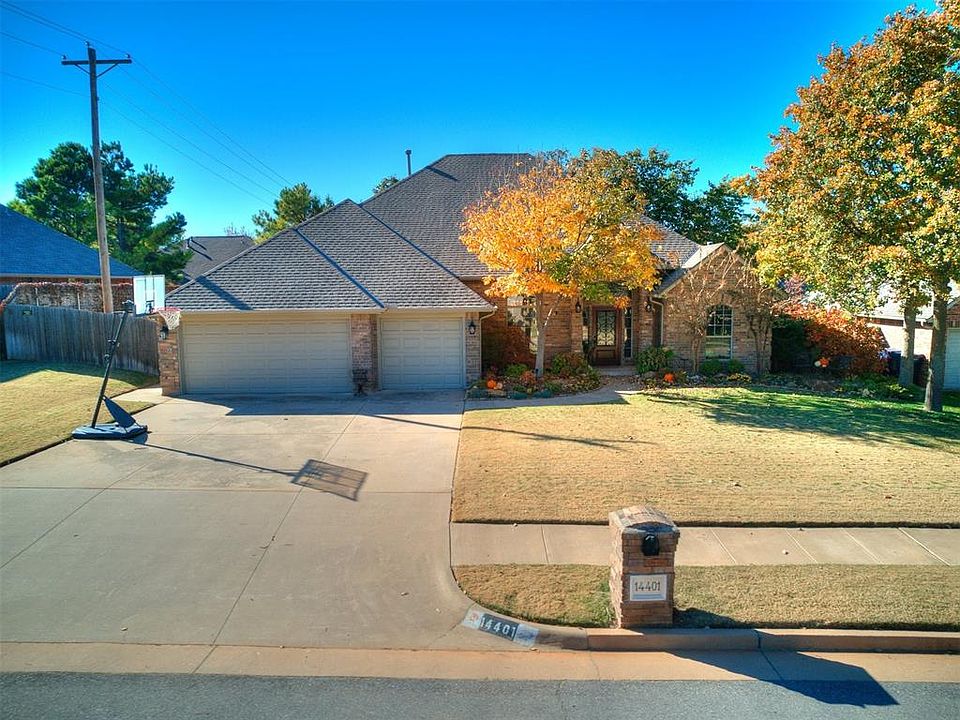 Welcome home to 14401 Oxford Drive! This beautifully cared for home is located in the highly sought after Kensington Place. Sitting on a cul-de-sac, as you pull up to the house you are immediately greeted by beautiful trees and gorgeous landscaping. As you walk in, the open entry gives access to the dining and front living area, both with beautiful hardwood floors. From first step in, the openness is a perfect layout for entertaining. To the right you will find a secondary bedroom with its own full bath, as well as the master bedroom. The master is generously sized, has patio access and a large en-suite bathroom with double vanities, walk in shower and soaker tub. As you walk past the dining and front living you will see a wall of cabinets to your right, perfect space for pantry storage with immediate access to the kitchen. The kitchen has gorgeous granite, electric cooktop and built in oven. There's an abundance of storage and a bar top that easily sits 3 bar stools. There is also an eat in, access to the back patio and a perfect workstation with built in desk. The large family room is also located in this area, giving privacy and coziness! The family room has cathedral ceilings, oversized windows and gas log fireplace. If you continue down the main hall you will find 2 more secondary bedrooms with a shared jack-n-jill bath. There is also more storage down this hall! Outside in the back is the most gorgeous yard space! Complete with the oversized patio, which is partially covered making it great for relaxing and unwinding after a long day. And it backs up to a treed green belt area with a small creek, which is the perfect place to watch for wildlife!