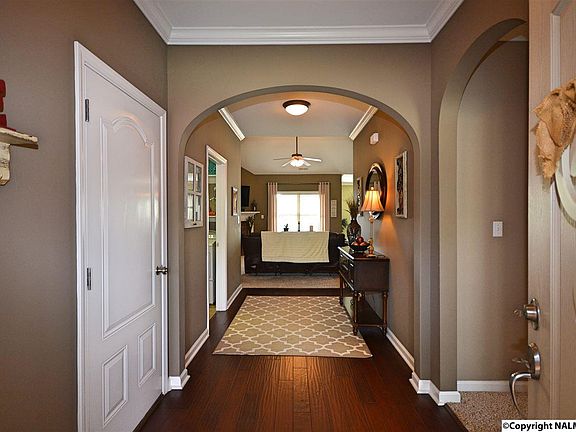 Located in the beautifully landscaped & gated Canebrake. Easy access to I-565, 65 & 72 for quick HSV, Madison, & Decatur commutes. Stunning open FP w/ crown molding, soaring ceilings, updated carpet, boasting arched doorways & corner gas fireplace in family Rm. Spacious kitchen w/ abundant cabinetry, granite, ceramic tiled backsplash & flooring, breakfast bar & eat in. Large isolated master suite w/ trey ceilings--glam bath w/large walk-in & soaking tub. Spacious 4TH Bedroom can also be a bonus/media rm. Floored attic space.Abundance of storage and closet space. 15x10 covered patio. Included amenities with HOA: tennis, fishing ponds, community pool & restaurant. Golf memberships avail.