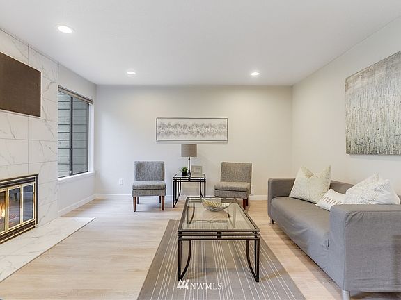 This beautiful newly renovated 2 bedroom, 1.75 bath condo lives large! The kitchen boasts quartz countertops and stainless steel appliances which opens to a brightly lit living room with a floor to ceiling tiled fireplace. Sliding glass doors off the living room lead you to the tranquility of your own private covered patio. Storage closets are abundant and the high-end finishes are a must see! New dishwasher & stove, new vinyl plank flooring, fresh paint, and a new hot water tank fill this space. Enjoy a private covered parking spot and close access to coveted parks, shops & eats with Fairwood Mall across the street. Come tour today!