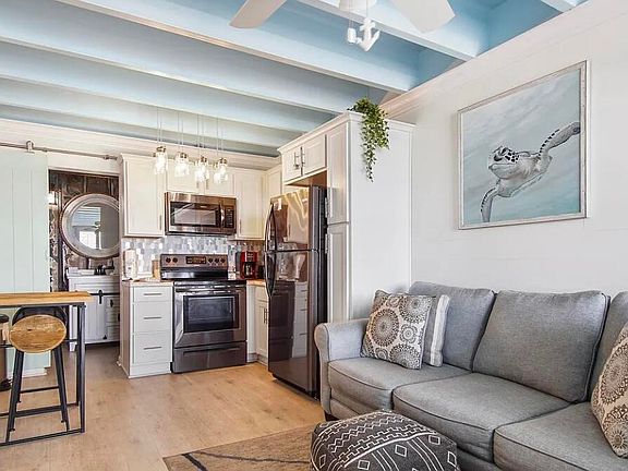 Welcome to Fontainebleau, a charming Gulf Front Condominium nestled in the heart of Panama City Beach, one of Florida's top vacation destinations. This historic building presents breathtaking views of the sandy shoreline and the Gulf of Mexico, capturing the essence of coastal living. Inside, you'll discover a cozy studio adorned with custom cabinets, shiplap walls, crown mold throughout and a gorgeous modern barn door leading to the rustic beachy bathroom, All creating a stylish and inviting atmosphere. The elegant Luxury Vinyl floors and chic kitchen backsplash enhance the appeal of this delightful space. Fontainebleau offers more than just stunning vistas; it features an array of fantastic amenities, including a beachfront pool, a fully-equipped fitness center, convenient elevators, a welcoming owners' lounge, and laundry facilities. The HOA covers essential services like water, cable, and electricity for your convenience. Located just a short walk from Pier Park along Front Beach Road, this property is surrounded by a variety of local attractions. This fully furnished studio is the perfect choice for anyone eager to enjoy the beach lifestyle while also securing a valuable investment property.