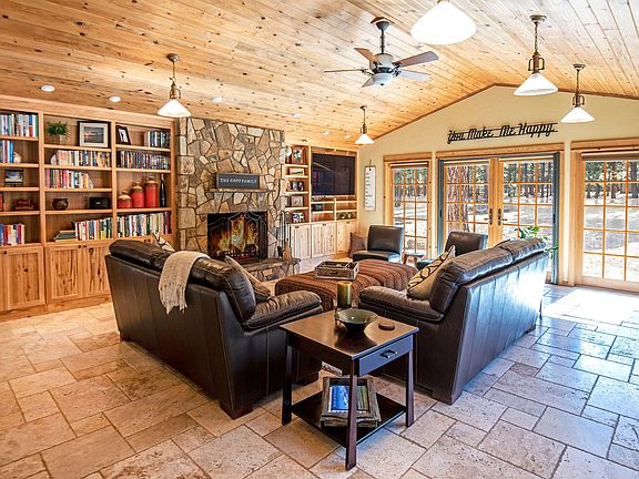 Dream property, dream home! Single level 2,828 square foot mountain cottage totally and beautifully remodeled and featuring extensive use of wood and stone. Fenced two acre parcel with space for horses, gardens, tennis or pickleball courts. Access to National Forest trails just 100 yards away. Huge 2400sf heated shop with bonus room up. Great barn for horses or essential toys. Perfect home for aging in place with high end finishes, radiant in floor heat, open floor plan and 36' wide doorways. Expansive stone courtyards and patios. Multiple full hookups for RVs. In a development surrounded by National Forest. This property meets the 2 acre minimum to be eligible for an Accessory Dwelling Unit (ADU)! Please see www.deschutes.org/adu for more information.