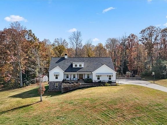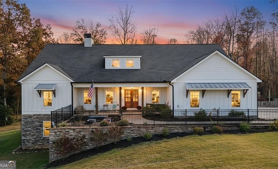 Charming Modern Farmhouse on 4.82 Private Acres! Welcome home to this stunning farmhouse retreat perfectly situated on a partially wooded 4.82-acre lot, offering the ideal blend of privacy and modern comfort. From the inviting front porch to the spacious open-concept interior, this home is designed for both relaxation and entertaining. The front yard is beautifully cleared and grassy, providing a perfect space for outdoor play or gatherings, while the backyard offers a peaceful wooded backdrop for added privacy. Enjoy morning coffee or evening sunsets from the back deck. Enjoy your own fenced garden area with raised beds and a charming picket fence-perfect for growing flowers, herbs, or vegetables. Step inside to a light-filled great room featuring cathedral ceilings and a seamless flow into the dining area and chef's kitchen. The kitchen boasts custom crisp, white cabinetry, gleaming granite countertops, and high-end GE Cafe appliances, making it the heart of the home. A separate office or optional formal dining room offers flexible space to fit your lifestyle. The luxurious master suite is a true retreat, featuring a huge walk-in closet and a spa-inspired bath with dual vanities, a soaking tub, and a large tiled shower filled with natural light. The split bedroom floor plan provides three spacious secondary bedrooms and a beautifully appointed hall bath with stylish tile flooring and a tiled tub/shower combo. Enjoy the convenience of the dream laundry/mudroom, complete with custom cabinetry, abundant storage, and a sink - perfect for today's busy household. Additional highlights include a large two-car kitchen-level garage, extra-wide stairs leading to an unfinished basement (stubbed for a bath) offering endless possibilities, and a walk-up attic with permanent stairs, offering tons of storage, and ready to be finished into a bonus room or additional living space. This exceptional property combines modern amenities with timeless farmhouse charm. Don't miss this rare opportunity to own a piece of country paradise!