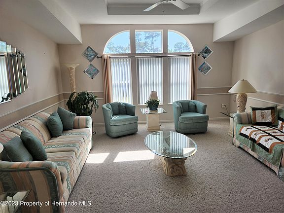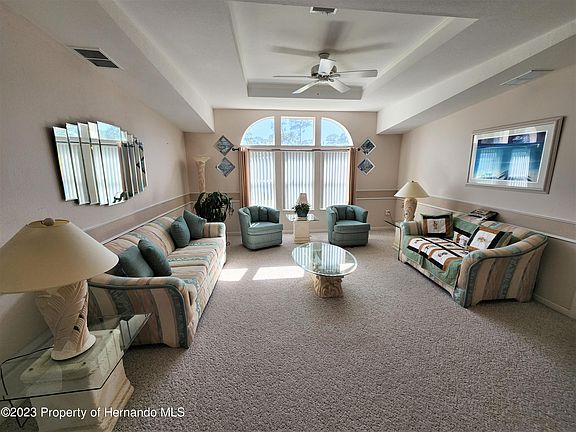 Brookridge Community 3 Bedroom Home On A Oversize 1 1/2 Lot With A Very Different Open Floor Plan- 2 Full Bathrooms And A Oversize 1 Car Garage Attached Plus A Golf Cart Garage- Enter The Home To A Lead Glass Door And Tiled Foyer- The Great Room Has Vaulted And Tray Ceilings- Then A Oversize Eat In Kitchen With Granite Counter Tops, Walk In Pantry, Dual Sinks With A Water Purifier Plus A Large Dining Area- The Family Room Has Vaulted Ceilings And Is Great For Entertaining- There Is Also A Glass Enclosed Lanai- Extras Include 2 Ring Cameras, Interior Paneled Doors, Water Softener, Irrigation System, Newer Batteries On The Golf Cart, Shed With Attic Storage, Brick Paver Walkway From The Front Of The Home To The Back, Remodeled Guest Bathroom And Much More- Call Today For A Showing.