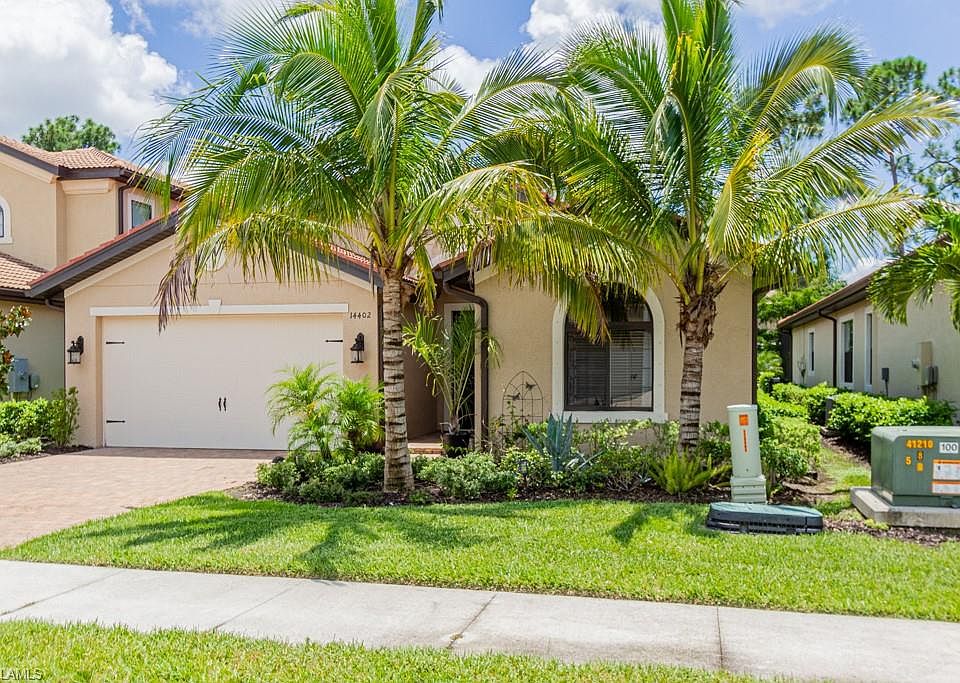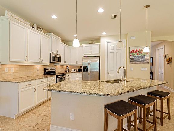 PRICED TO SELL!!! You can't miss the opportunity to own this spacious single family home with an open 3/2 Pembroke model in Tuscany Pointe. It has over 1800 sq ft of living area and several upgraded features. Granite counter tops in bathrooms and kitchen, stainless steel appliances and large center island. Neutral tile flooring with carpeting in the bedrooms, along with dual closets in the master suite. Screened lanai overlooks the preserve, giving you a very private back yard. TUSCANY POINTE is situated in the desirable school district of North Naples and the HOA fees are only $174.00 a month.