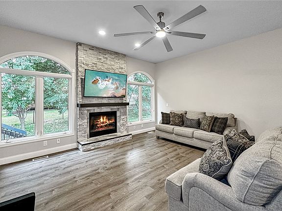 Fall in love with this amazing 5-bed, 3 bath Ranch with stunning upgrades & 2,688 sq ft of quality finish. Walk into the spacious open floor plan to the living room, dining area and a perfect kitchen. The living room boasts marvelous LVP flooring and a floor-to-ceiling stone fireplace. Dining area & deck are great for entertainment. Mature trees provide wonderful privacy. You'll say WOW when you see the stunning Quartz countertops in the kitchen and under cabinet lighting. Convenient breakfast bar, pantry, and new stainless steel appliances that all stay. Main floor laundry right off the kitchen. Continue through to the 3 bedrooms with 2 baths with heated floors and the