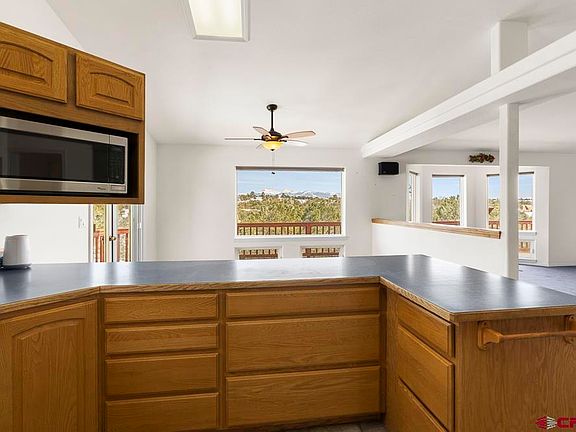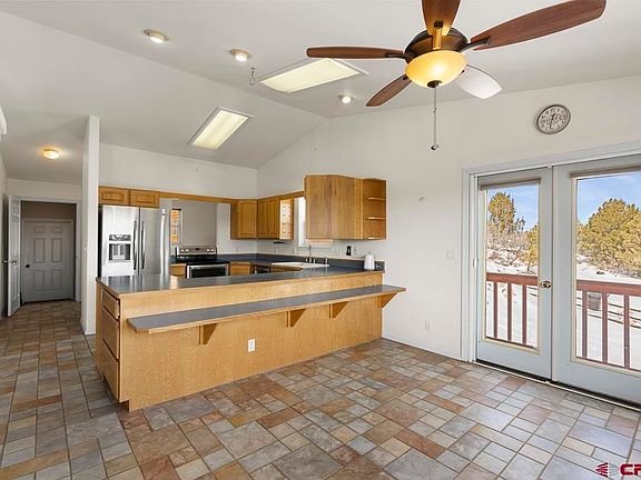 WALLS OF WINDOWS AND MOUNTAIN VIEWS in the quaint cowboy town of Mancos, Colorado. This home on 1.38 acres is the perfect escape from the hustle and bustle of city life! Main floor large master suite with newly installed bathtub and spacious walk-in closet. Home office located directly off master bedroom with deck access. Open kitchen and dining room with vaulted ceilings and walls of windows to view the gorgeous mountain peaks. Step onto the Redwood wraparound deck directly off the kitchen and enjoy a cup of coffee while watching the sunrise. Bose surround sound and propane gas fireplace in the living room. Large mud room/laundry room with lots of storage space. Fully finished walk-out basement with two additional bedrooms, a full bathroom, and large entertainment room. This home has an oversized two car attached garage, with an additional detached shop measuring at 16 feet in height for storing all your recreational equipment and gear. It's an outdoor enthusiast's dream come true! Large fenced yard with 3 RV hookup spots. Within walking distance to Summit Lake for fishing, boating or paddle boarding! No HOA. Buyer to verify square footage to their satisfaction.