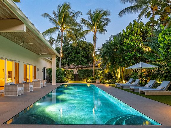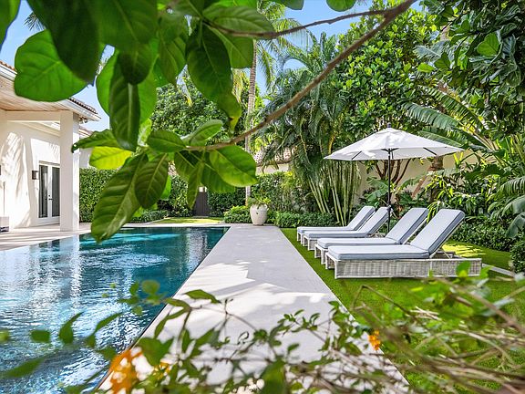 A true masterpiece of luxury, this one-of-a-kind residence is located in the esteemed neighborhood of Equestrian Club Estates, just a golf cart ride away from the show grounds. Situated at the end of a cul de sac for ultimate privacy, with a pie shaped, extra large lot that gives this property exquisite outdoor living. The meticulously renovated 4-bedroom, 3.5-bath home has been expertly reimagined by renowned Chicago architect, Steve Rugo. The timeless interior boasts exposed wooden beams, state-of-the-art appliances, and bespoke fixtures throughout. Vaulted ceilings and an open-concept living, kitchen, and dining area combine to create a bright, airy space that fosters a sense of tranquility and relaxation. The zero-edge, 45-foot pool is surrounded by picturesque landscaping, thoughtfully curated by the award-winning Fernando Wong firm. It gives the backyard a feeling of being at a tropical resort! An expansive screened porch is outfitted with IPE flooring and an all-weather designer awning creates the perfect entertaining space. Additional features include impact-resistant glass, a 3 car garage, and updated HVAC and water heater systems. A new roof was installed in October 2023. Ideally located just a short walk from equestrian venues in one of Wellington's finest neighborhoods, this home offers a rare blend of luxury and convenience- perfect for enjoying the season in style!
