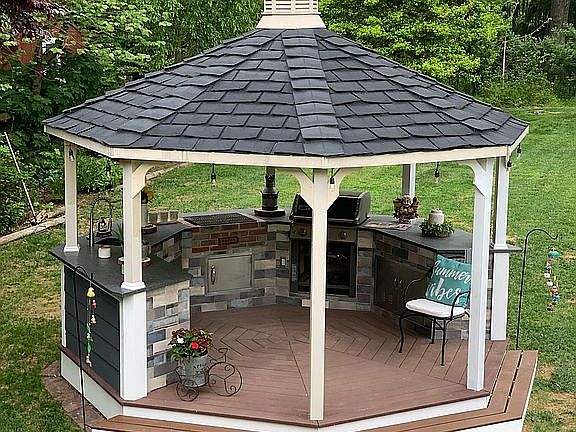 Contractor owned home which was remodeled with the utmost care to be their forever home. Circumstances changed and now they are relocating. All improvements listed here were done within the last 3 years. Enjoy living and entertaining in this beautiful updated and expanded home. Improvements include new relocated kitchen with quartz countertops, new appliances and cabinets. Large dining area with hardwood floors continuing into kitchen. Walk out to covered patio from this level and enjoy the beautiful yard. Lower level expanded into back yard with walk out French doors into yard. Enjoy cooking in your summer kitchen located in the gazebo. The primary suite was also expanded. Enjoy drinking your coffee on your private balcony overlooking the back yard or cuddle up in front of the fireplace and watch tv. Primary bedroom has heated floors in bathroom. The room has endless possibilities. The walk-in closet has custom built-ins and the primary bathroom is large and new and beautiful. The lowest level is a fully finished flex/bonus room. The laundry room is located in this area. The windows in the home are new. There are two new HVAC systems, the water filtration system in the house is new, the septic was emptied earlier this year and the solar panels are 2.5 years old and the contract is assumable. The detached garage out back conveys "as is." Gas fireplace in great room is fire-burning but has been converted to gas burning. It can be converted back as liner is in place. Seller prefers using Pinnacle Settlement Services.