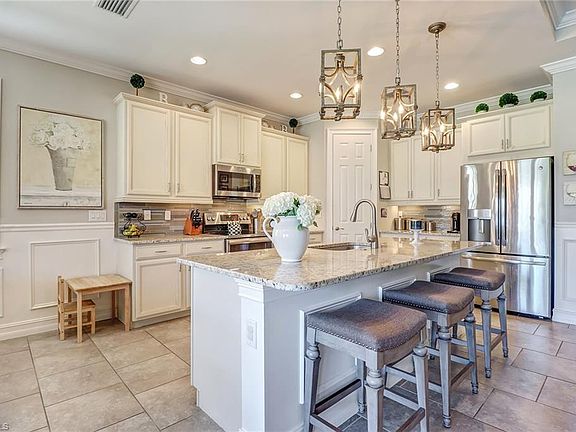 An absolutely incredible offering in a prime location. This meticulously maintained waterfront pool home features an open floor plan and upgrades that need to be seen to be appreciated. Extensive trim and woodwork throughout the home compliments the upgraded baseboards and crown-molding throughout. The home is rented by the original owners who left no stone unturned when selecting options and upgrades including a 3 foot extension on the rear lanai/deck to offer more uncovered lanai space around the customized swimming pool and spa. Recessed canned lighting in the lanai, half bullnose creama pearl granite in the kitchen and baths, glass and stone mixed mosaic kitchen tile backsplash, and retrofitted box panels to hide HDMI wires in the main living area are just some of other options selected by the discerning sellers who relocating for work.