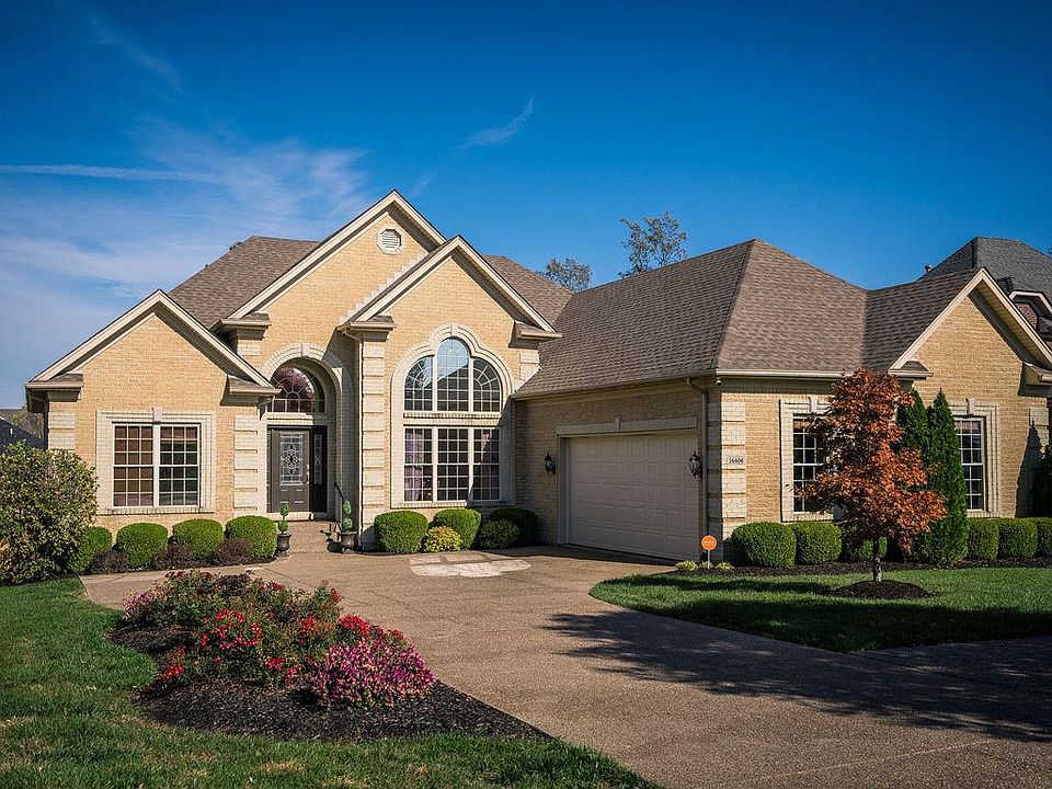 Beautiful walkout ranch on a cul-de-sac with a pond view and great location near I-265, restaurants, shopping and amenities! Enjoy easy, first-floor living with this spacious, open floor plan featuring hardwood floors, vaulted great room with fireplace, gracious dining room, well-appointed eat-in kitchen with granite countertops, gas cooktop with hood, GE Profile stainless appliances and big deck overlooking the lovely pond. Downstairs you'll find a large family room with high ceilings and a wall of windows, a bedroom, full bath, craft room and two unfinished spaces for storage, one that includes a SECOND LAUNDRY! Home features Smart Home Technology and more.