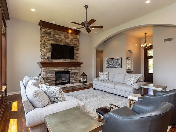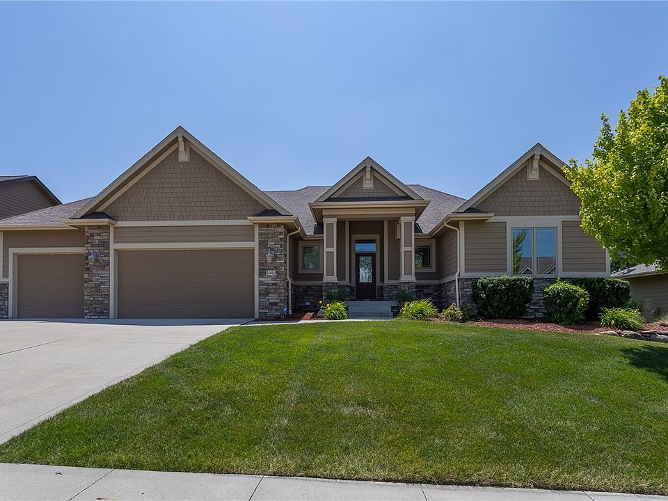 STUNNING!!! Welcome to this beautiful executive ranch home boasting 4 bedrooms, 3 bathrooms, a walkout basement, and over 3,700 square feet of luxurious living space! Enjoy the abundance of natural light, large windows (w/motorized blinds) and stunning hardwood floors that span throughout the main level. The open floor plan creates a seamless layout combining the kitchen, living room & dining area perfect for family gatherings! The kitchen features granite countertops, custom cabinetry, a large island, and stainless steel appliances. The custom wood shelves in the large pantry provide ample storage & an easy way to stay organized. First floor primary bedroom suite w/tray ceiling, large walk-in closet, and an en-suite bath with granite countertops, dual sinks, and beautiful tile shower. An addl bedroom, full bath, main floor laundry & locker area provide convenience for everyone! Enjoy surround sound speakers throughout the home & deck! In the walkout lower level you will find 2 more spacious bedrooms, full bath w/granite countertops & beautiful tile flooring. The large living space, and a full bar w/beautiful cabinets & granite countertops is the ultimate entertaining space! Enjoy hosting gatherings & creating memories with family & friends on the covered deck. Newer A/C 2020, Irrigation, and water softener are a bonus. All information obtained from Seller and public records.
