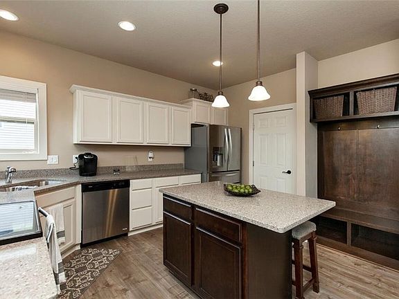 Here it is!! Beautiful, well-kept and updated 5 year old home with newly finished basement, enormous back patio area and favorable lot size and location. This home includes three-stall garage, ample pantry and cabinet space, 9' main floor ceilings, granite counter tops, and freshly painted deck. The second floor boasts 3 large bedrooms and a master en suite. Basement area includes functional and practical queen size Murphy bed with built in shelving, 3/4 bathroom, and wet bar with quartz countertop, in addition to daylight windows. Enjoy the sunsets out the large living room window, or outside on the patio space. South-facing driveway makes for favorable driveway snow melting. Waukee School district busing right up the street.