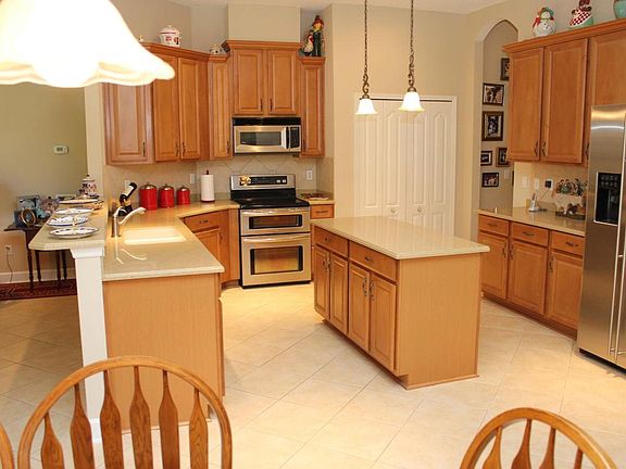 Beautiful, meticulously maintained home on a large private lot, with wrap around lanai. This home shows like new. It''s a 6/4 (w/upstairs bonus rm as one of the bedrooms), 3 car garage, neutral over-sized ceramic tile & carpet; gas fireplace in family rm., 42'' cabinets & island in kitchen-all appliances convey. Master suite w/tray ceiling and sitting area. Built in shelving in Family Rm; Extended covered Lanai; All Deluxe window treatments convey. This home is in excellent condition, and is only a short walk to the amazing amenities. It''s a must see!
