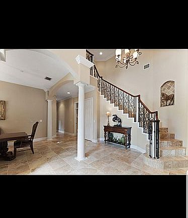 Beautiful 4 bedroom 4 bath plus den home on a great 2.14 acre corner lot! Solid wood, mission style, double door entrance opens to an elegant foyer with graceful stairs that lead to the second floor. Formal living and dining rooms with cove molding and decorative columns. The kitchen offers high-end wood cabinets with tumbled marble counters; Kitchen-aid stainless steel appliances; granite topped island with cook top, sink and breakfast bar; desk and dining area plus pantry. Open family room with lovely fireplace and French doors open to the covered patio. Spacious master bedroom suite with 8x10 sitting area opens to a private patio courtyard. Other features include double coffered ceiling and a huge 11x13 walk-in closet. The master bathroom offers dual custom cabinet vanities, separate shower, Jacuzzi tub, double coffered ceiling and sliders that open to the private patio. The second floor has a loft media/lounge, one bedroom with its own bath and two bedrooms with a Jack and Jill bath. Other features include transom windows above all interior doors on the ground floor, marble and wood floors, high-hat lighting, sound system and security system.