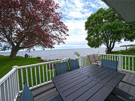 Welcome to your lakeside retreat! This beautifully maintained 2-bedroom, 2-bathroom, 2-story home is nestled right on the shores of Lake Ontario, offering breathtaking views and direct access to the lake. Whether you're looking for a year-round residence, a seasonal getaway, or a lucrative income property, this turnkey home is ready to impress. Enter through a charming covered patio into a bright and inviting foyer that leads to a spacious living room, dining area, and a well-appointed kitchen, all designed for comfort and ease. A full bathroom and laundry room on the first floor add convenience to everyday living. Upstairs, you'll find two generously sized bedrooms, including a primary suite with a private balcony, the perfect spot to enjoy morning coffee while taking in panoramic lake views. A recently updated full bathroom (2024) adds modern touches to the upper level. Step outside to enjoy the newer back patio and private yard, ideal for bonfires, gatherings, or simply soaking in the serene waterfront setting. Additional updates include a new hot water tank (2024), and the home comes fully furnished, ready for immediate move in or rental use. Don't miss your chance to own this exceptional lakefront property, a rare blend of comfort, charm, and investment potential!