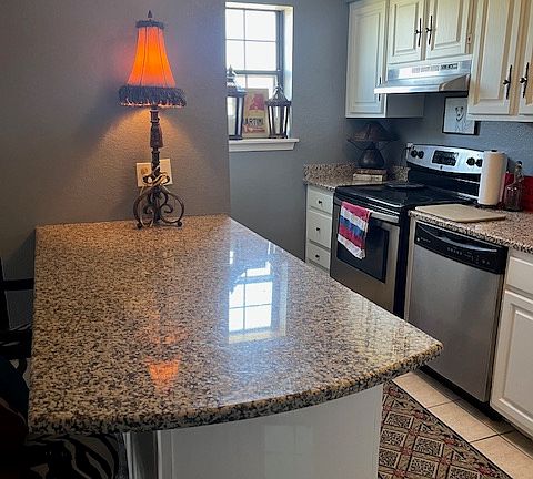 1 bed 1 bath condo granite countertops in kitchen and bathroom stainless steel appliances washer dryer in unit brand new paint brand new carpet balcony courtyard fireplace ceiling fan,covered parking gated complex very secure must see won't last long. Owner pays water renter pays electric there is no gas