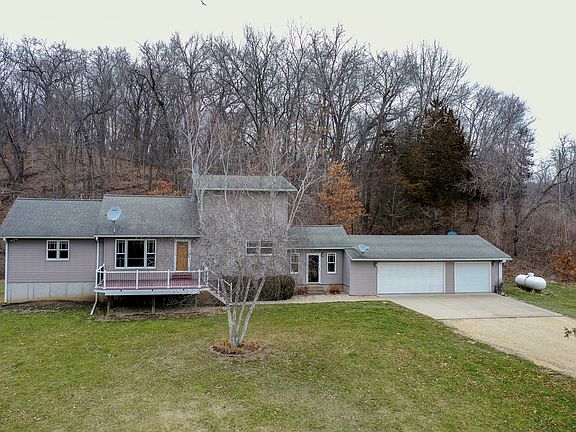 This property is located in the heart of Carroll county. Connected to large timber blocks and agriculture fields. As you come down the winding lane you cross over a bridge and creek that leads you to the property. First you are greeted by a nice pond. Continuing up the drive you come to the 32x36 outbuilding. Double overhead door on one side allows access to the cold storage side with floor drains. Single overhead door on the shop side with insulated walls and clean liner panel aesthetic. Tons of overhead lighting, outlets and heated floors. Up the lane you come to the home. Entering in the breezeway you have tons of storage and room for all your boots, jackets, and gear. Off of the breezeway you can either go into the spacious garage that has additional storage and is piped with a gas line for a future heater. The other direction takes you into the remodeled kitchen. Beautiful gray cabinets and granite countertops. Open floor plan from the kitchen into the dining/living room area. Gorgeous limestone wood fireplace that goes from the floor to ceiling. First floow master bedroom that has glass pocket doors. Oversized master with built-ins, walk-in closet, and master bathroom. Additional bedroom that has been converted into a office/main floor laundry with half bathroom, could easily be turned back into a bedroom. Open wood staircase that leads your upstairs for another large bedroom and full bathroom. Lower level is unfinished but has two windows that could be finished for more living space. Full bathroom in the lower level. Composite deck off the front of the home with amazing views. Excellent wildlife with deer, turkey, and ducks. Do not drive down the lane with out a scheduled appointment with real estate agent.