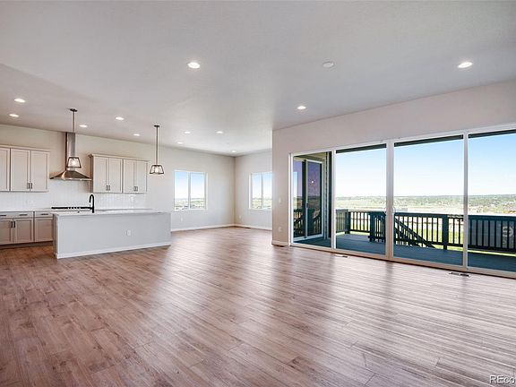 Thoughtfully designed ranch style home is brand new and move-in ready, perched on an elevated lot with a finished walk-out basement in desirable Trails at Crowfoot! The best of one level living awaits as you walk through the front door and immerse yourself in this open-plan design with modern details like the open metal railing and cosmo style fireplace. The spacious kitchen features stainless steel chef’s style appliances, light warm grey colored cabinetry with soft-close drawers, and elegant quartz countertops. The extended covered deck just off the great room allows for a seamless flow between indoor and outdoor living. Enjoy sunrises with coffee and cool evenings in the summer. The primary suite boasts two walk-in closets and a spa like private bath. Two additional bedrooms on the main level utilize a shared full bath. Enjoy the additional space to stretch out with the added living and storage areas of the finished walkout basement with recreational room, bedroom and bathroom. You will be delighted by the quality of this Tri Pointe Home, with ample natural lighting and limitless style. Trails at Crowfoot features a community pool, pickleball courts, tennis courts and basketball court. There is plenty of room for outdoor activities at the 17 acre town park, 3 neighborhood parks and over 100 acres of open space with miles of trails, plus there are 3 private golf courses nearby. Conveniently located with access to everything that both Parker and Castle Rock have to offer!