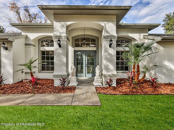 You will not be disappointed by this fantastic 4/2.5/2 POOL home in the beautiful East Linden Estates neighborhood. So much to offer with 2058sqft of living space, an oversized garage, and a huge .69 acre treed lot. Open concept, light and bright floor plan features a great room with 12' ceilings, separate formal dining room, breakfast nook, and a split bedroom layout. The kitchen has modern two-tone cabinets, granite counter tops, custom backsplash, a pantry and a full stainless appliances package. Enter the private main bedroom en-suite through double doors and enjoy the lovely tray ceiling, plantation shutters, and large attached bathroom also featuring granite counter tops. The additional bedrooms are spacious with plenty of closet space. The hall bathroom has been updated with a new gray vanity, custom tile work, and granite counter tops. Pocket sliders lead from the living space out to large lanai and the recently resurfaced pool with a water feature, freshly painted deck, and out door shower. Updates galore with fresh interior and exterior paint, new light fixtures, new durable LVP flooring, and much much more! Don't miss out.