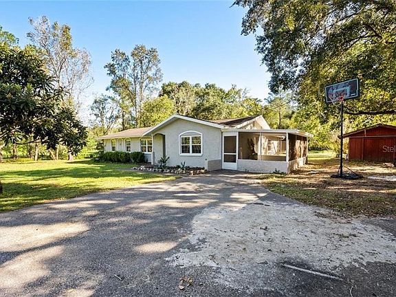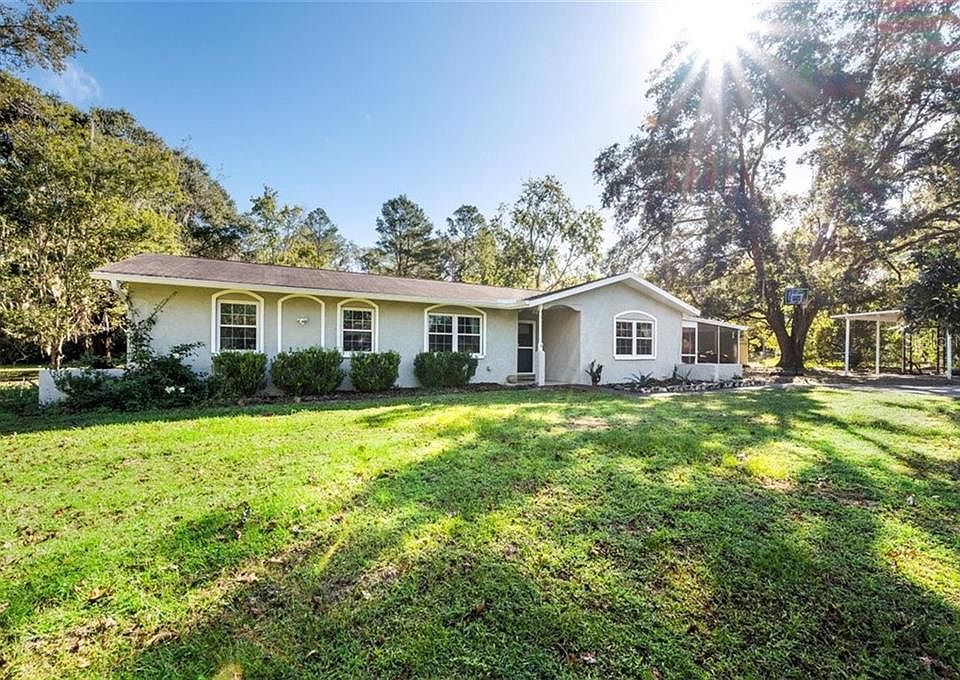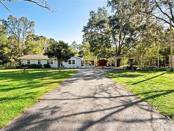 BACK ON THE MARKET and ready for you. This nearly 2 acre 4 bedroom 2 bathroom pool home is situated on a dead end street. Enjoy the tranquility of this desirable property while viewing the beautiful open fields in front of the home. The bedrooms in this home are spacious and the master bedroom has a walk in closet. This home features kitchen custom wood cabinets with under mount lighting, double pane windows throughout, and all the appliances are less than a year old. The home is very airy with over 2500 Sq ft of living space which includes a large bonus room. Relax with your Family and Guests by the caged pool perfect for entertaining. This property also features a large covered screened in lanai, 2 de-attached carports and a 2 outside Storage Sheds. The well pump is is 6 months new! This property is a must see for anyone looking for serenity while living in a perfectly functional living space. Call to make you appointment today!