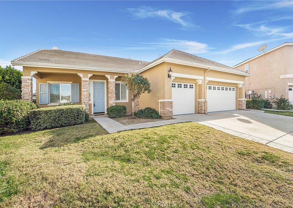 MOVE-IN READY SINGLE-STORY HOME IN EASTVALE! This 4-bedroom, 2-bathroom home is approximately 2,417 sq. ft. and is situated in a quiet cul-de-sac. As you enter the home, you will notice the open floorplan as you walk through the foyer and into the family room and formal dining room. The spacious living room has a cozy fireplace and is open to the kitchen. The kitchen includes granite countertops, a walk-in pantry, bar seating for 3, an additional dining area, and plenty of cabinetry! Down the hall you will find the 3 spacious secondary bedrooms, which share access to the full bathroom with a dual sink vanity. The primary suite is expansive and features an ensuite bathroom - with a dual sink vanity, sunken tub, walk-in glass shower and large walk-in closet. The backyard is a dream! With a covered patio, gazebo, plenty of grass and lush greenery, plus a large side yard - this home has it all! Additional highlights include a 3-car garage with storage, a spacious laundry room, and more! Schedule your private tour today!