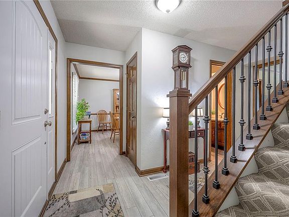 Newly installed front landscaping and a charming front porch welcome you to this home in the Dellwood Park neighborhood of Lenexa, Kansas. This custom-built, one-owner, two-story floor plan home offers 4 bedrooms--all on the upper level--3 full bathrooms, and 1 half bathroom. The updated kitchen features Silestone countertops, stylish stained cabinets, and a cool boxcar ceiling. The entire main level has LVP flooring. All the doors are raised panel doors and most rooms have crown molding. All bedrooms have walk-in closets and ceiling fans. The Laundry Room is on the main level, off the kitchen. You are just in time for outdoor living with the deck (only 2 steps down to the yard) and the large backyard surrounded by a privacy fence. There is even a shed for more storage. All of the deck furniture stays with the home as does the outdoor storage box. There is over 600 square feet of finished space in the basement, including a full bathroom and nonconforming bedroom. For your peace of mind, the seller has an Old Republic home warranty in place. The HVAC is 10 years old, and the water heater is 7 years old. The roof is 4 years young. A radon system is already installed. No pets live in the home and no HOA to pay or deal with. This home is truly move-in ready!