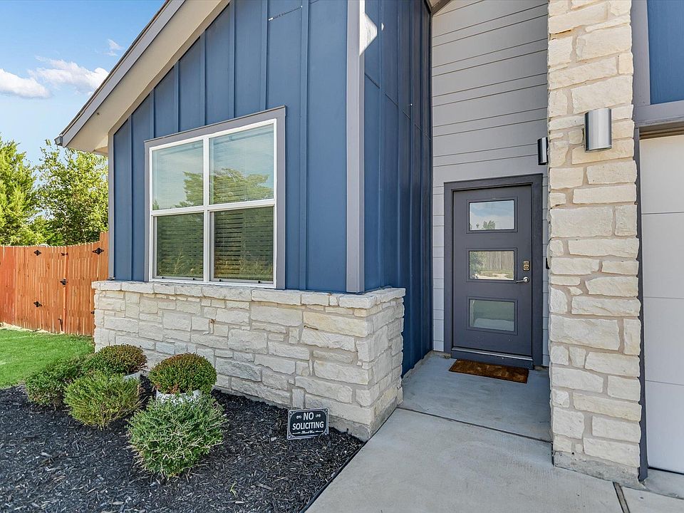 This modern, single-level home was built for comfort, style, and smart living. Step into bright, open spaces with wood-look vinyl plank flooring in the main living areas, designer tile in the baths, and a chef’s kitchen featuring quartz countertops, stainless-steel appliances, and crisp white cabinetry. The primary suite offers a spacious walk-in closet and spa-inspired bath with a tiled shower. Out back, a covered patio opens to a private yard that sits directly next to peaceful greenspace — perfect for relaxing or entertaining. This energy-efficient home features double-pane windows, quality insulation, and a high-efficiency HVAC system to keep utility costs low. Residents of the Cantarra community enjoy access to a neighborhood pool, playground, and walking trails, along with easy proximity to Toll 45, Samsung Austin, Tech Ridge, major employers, and The Domain. Stylish, efficient, and ideally located — this home combines modern design with suburban serenity.